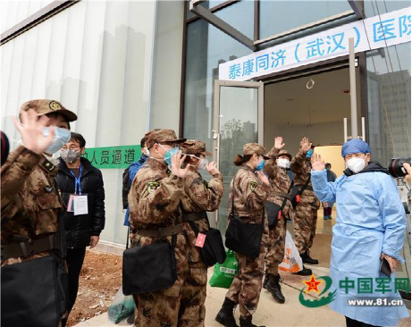 2月14日,泰康同济医院在战地中揭牌,与军队医疗队顺利完成交接。