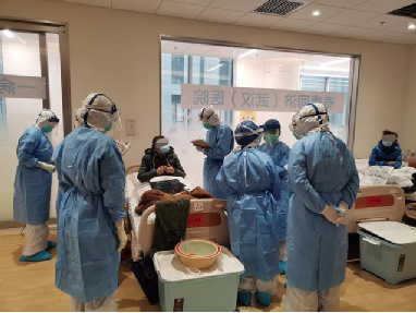泰康同济(武汉)医院医护人员逐个查看患者情况