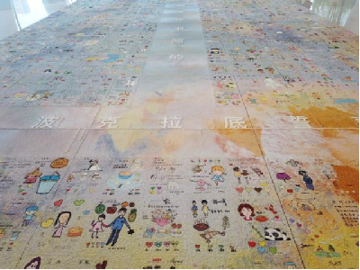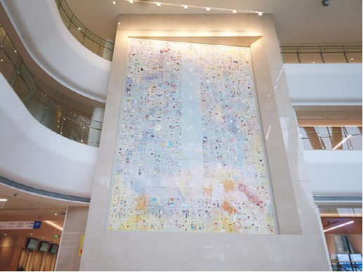 我们应当看到并记住的,不仅是这些英雄在一线的不眠不休,还有他们更真实的一面——英雄也是鲜活的人,同样有着自己的喜怒哀乐和深深牵挂。于是,艺术家团队在疫情最严峻的时刻记录下了军队援鄂医疗队与泰康同济医务人员最真实的心声,并汇聚成了一幅高9.9米、宽6.57米的大型壁画《用生命书写的希波克拉底誓言》。端午前后,这件由两万米特制麻绳制成的作品完成安装,陈列在了进入彻底消杀与全方位修复改造阶段的泰康同济(武汉)医院的门诊大厅中。