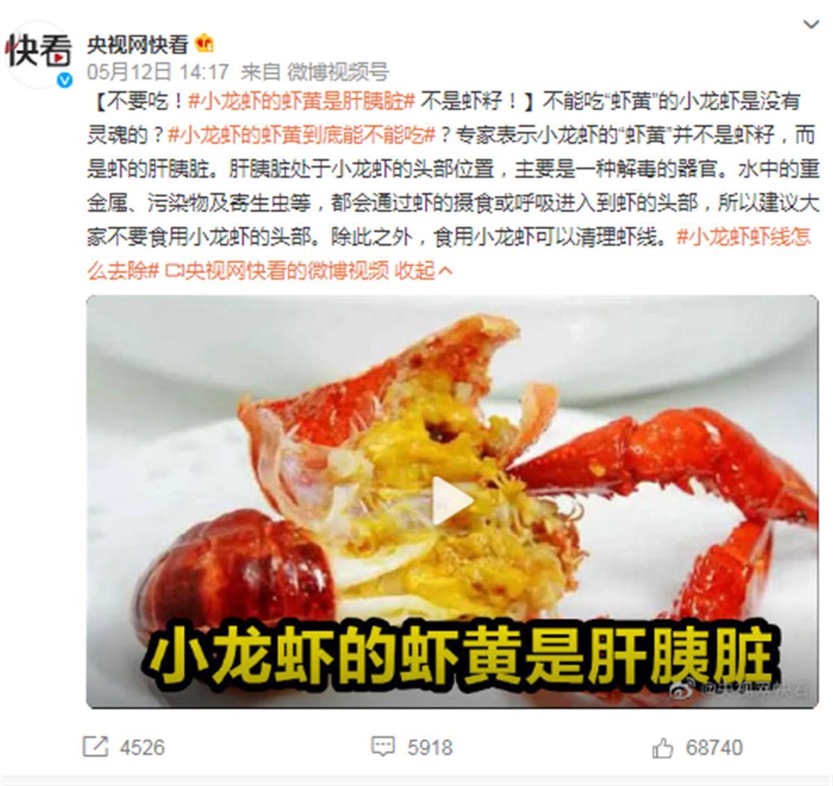 近日,“小龙虾的‘虾黄’是肝胰脏”这一话题冲上了微博热搜。有网友认为,不能吃“虾黄”的小龙虾是没有灵魂的。那么,小龙虾的“虾黄”到底能不能吃?为此,极目新闻记者采访了江城专家。专家表示小龙虾的“虾黄”并不是虾籽,而是虾的肝胰脏。为了安全起见,建议就不要吃虾黄了。