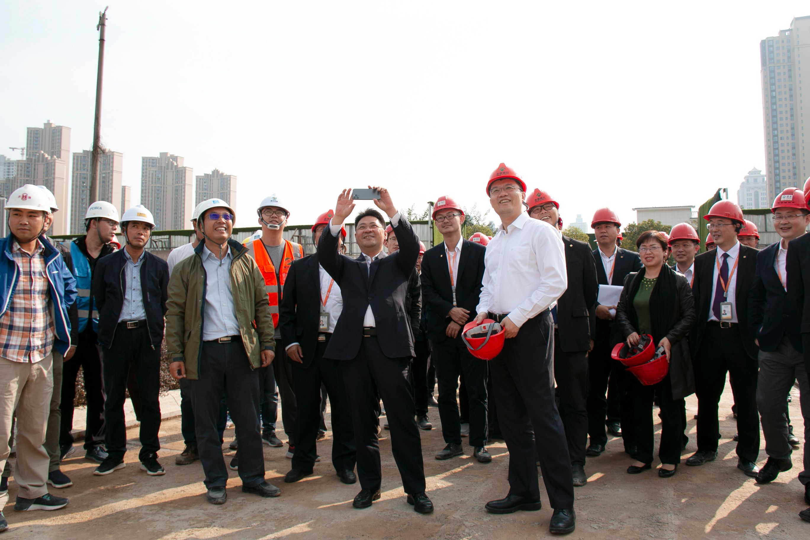 下午4点半,在参加完项目进展情况工作汇报后,刘挺军总专程来到条件比较艰苦的工地临时办公区,看望科室主任以及其他伙伴们,并与多位医务人员合影,感谢他们为泰康同济(武汉)医院的筹建做出的贡献。