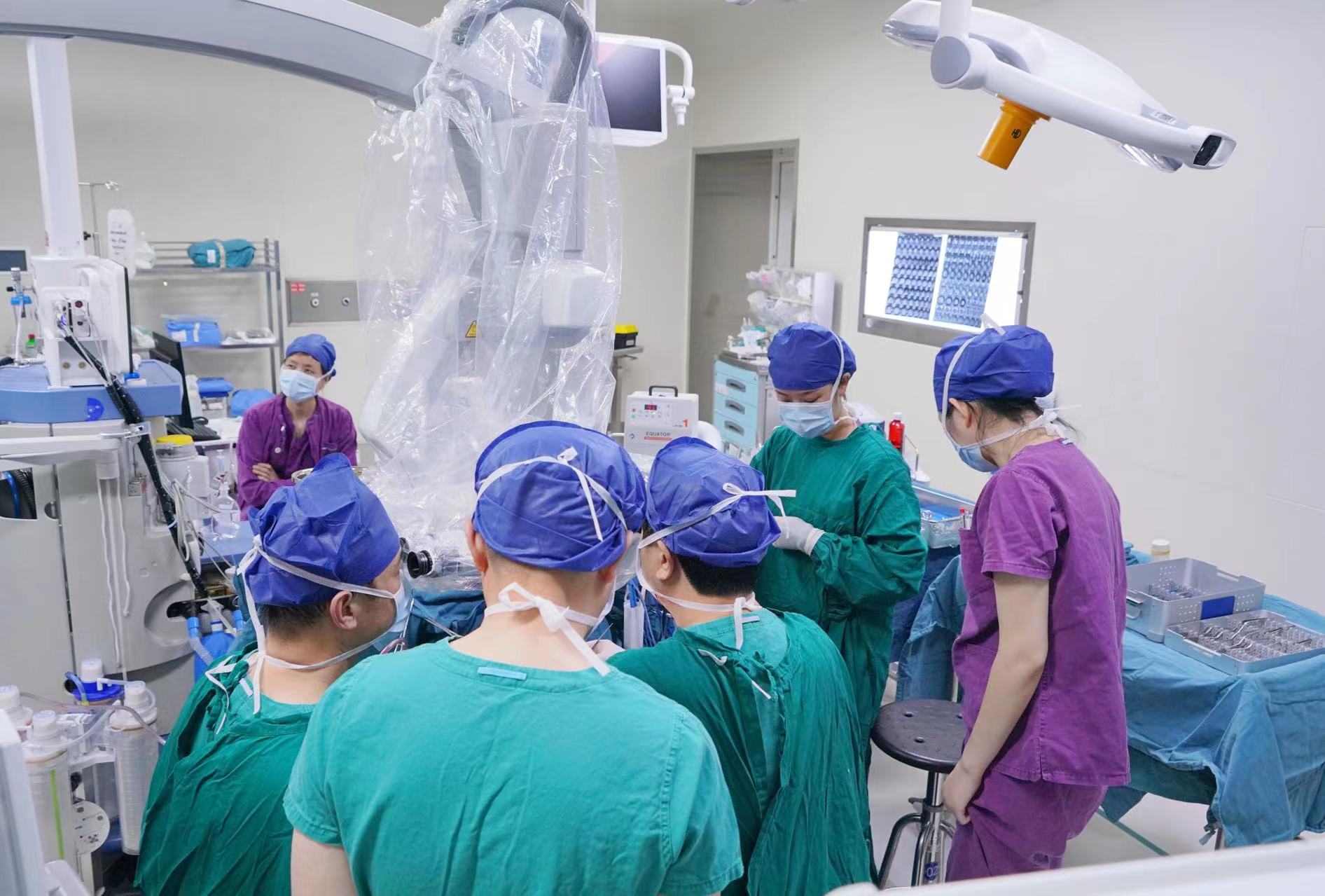 泰康同济(武汉)医院手术团队为脑胶质瘤患者进行左额叶病损切除术。通讯员林国山 摄
