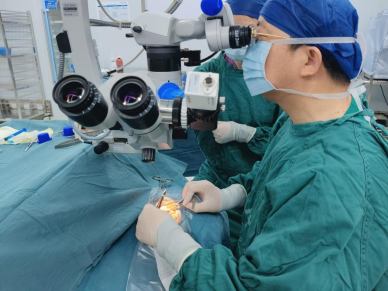 术中,陈建斌教授通过微创切口植入可折叠球囊,精准支撑脱离的视网膜,过程十分顺利,术后胡女士眼前黑影消失,视力得到显著改善。