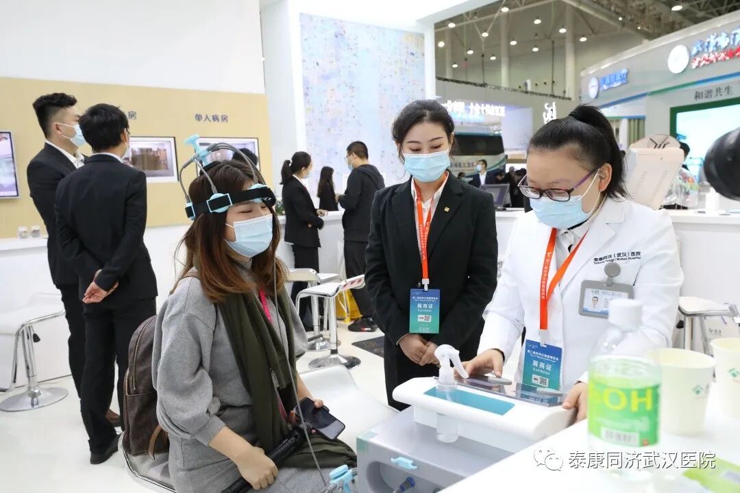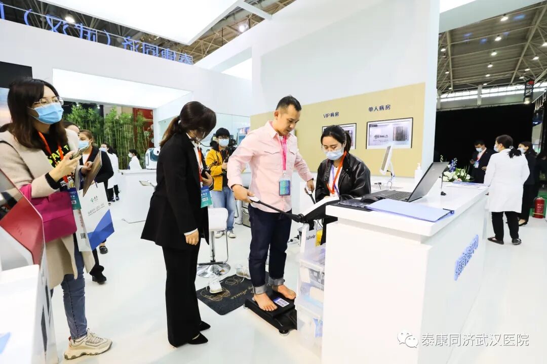 11月11日,第二届世界大健康博览会第一天,泰康同济(武汉)医院展位现场共计接待参观客户1000余人次,第二天多个体验区前更是排起了长队……